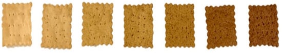 Crackers containing 0 (control) to 20% T. molitor flour (% w/w) from (right) to (left) []. Reprinted/adapted with permission from Ref. []. 2022, MDPI.