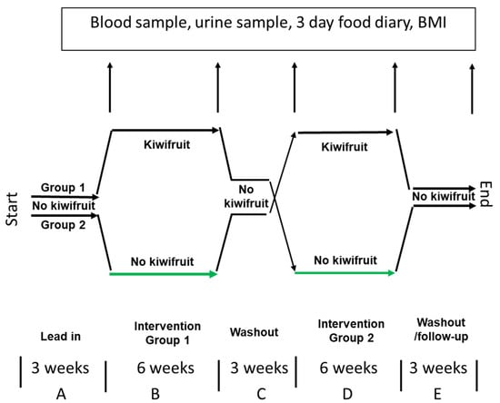 - Mishra, S.; Bentley-Hewitt, K.; Lubransky, A.; Venn, B.; Hedderley, D.; Dinnan, H.; Martell, S.; Haszard, J.; Monro, J. Metabolic, anthropometric and blood pressure effects of adding two kiwifruit or bottled water into the diets of people with pre-diabetes: A randomised, parallel group, intervention study. Recent Prog. Nutr. 2022, 2, 6. [Google Scholar] [CrossRef]