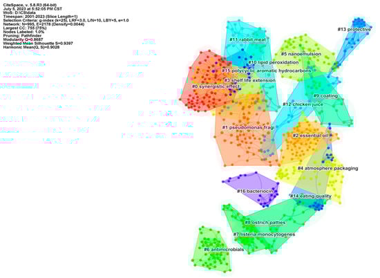 Cluster label mapping of co-cited documents in the field of meat preservation, obtained using CiteSpace.