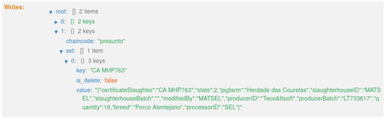 Future research should address the limitations mentioned above. More and more companies have been exploring blockchain technology to incorporate their traceability systems, to add value to their products. Although this work deals with the traceability of products made up of just one by-product (pork leg), this type of system also has the capacity to evolve into the traceability of products made up of several by-products, such as sausages and cheeses. However, without standardization of the data or communication between different systems, it will not be possible to achieve the full potential of blockchain technology.