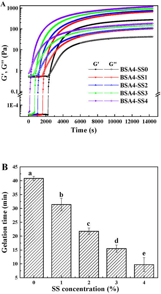 3.2. Acceleration Mechanism and Performance Improvement of BSA Cold-Set Gelation by SS