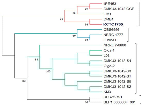 3.3. ANI, Phylogenetic Analyses and Whole-Genome Comparison of Kluyveromyces marxianus DMKU3-1042 Strain