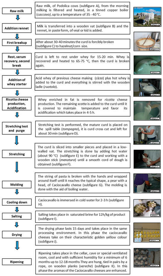 Flow diagram of Caciocavallo Podolico Lucano cheese-making process (photos by Lovallo, C.).