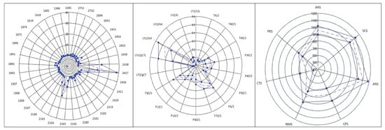 An analysis was conducted to evaluate the effectiveness of digital communication strategies and consumers’ understanding of CPL cheese. The analysis used a socio-semiotic methodology []. The first phase of the methodology was to create a checklist of parameters to assess the impact of communication (focus on the product, rootedness, consistency in narrative, interaction, use of new media, and use of mass media), as well as trends (safety, authenticity, naturalness, sociability, and simplicity). These parameters were chosen based on specific words, adjectives, or other aspects related to cheese. The evaluation of these parameters was conducted using the 1–10 Likert response scale (score 1 = absent; score 10 = fully satisfactory). In the next phase, a test lasting 5 s was carried out to search, on each home page, for each parameter established in the first phase. The parameter values were then recorded, and the average values were plotted in two Kiviat diagrams. As there is no institutional access site for CPL, the first websites that appeared in Google search results were analysed for the study.
