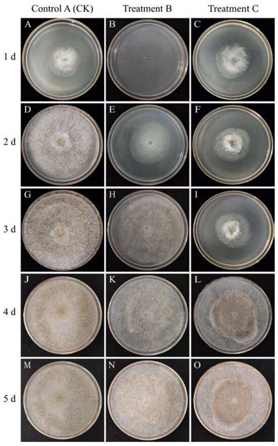 - Control A (CK): PDA plates were incubated at 28 °C for 5 days.