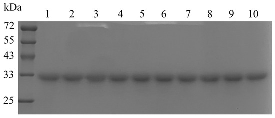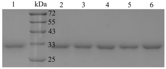 2.5. Expression, Purification, SDS-PAGE Analysis, and Protein Determination of L-Asparaginase