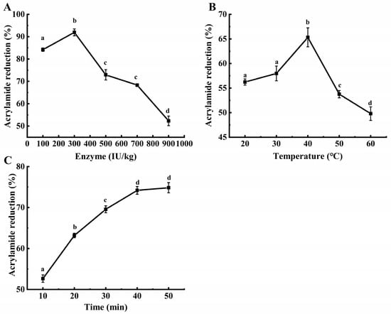 | Groups | Acrylamide Content (μg/kg) | Acrylamide Reduction (%) |
