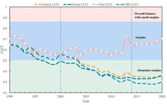 27]. Although some studies have explored LCC from a food nutrition perspective, there remains a dearth of long-term studies in China, and the global and regional variations are not well understood [