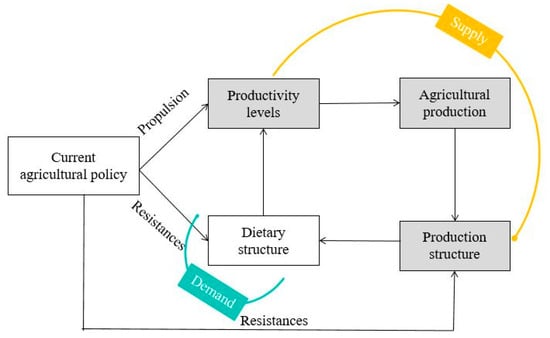 50]. Changes in the agricultural products on the supply side catalyze alterations in dietary structures on the consumption side, which, in turn, drive changes in production methods. This dynamic encapsulates market regulation as a natural social law.