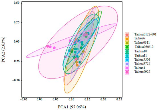 | Relative Amount/% | Taihua0122-601 | Taihua6 | Taihua0311 | Taihua0605-2 | Taihua10 | Taihua11 | Taihua7506 | Taihua9725 | Taihua4 | Taihua9922 |