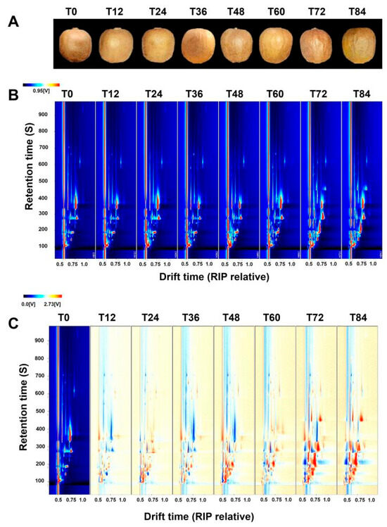 3.1. GC-IMS Topography of Ready-to-Eat Kiwifruit Samples at Different Storage Periods