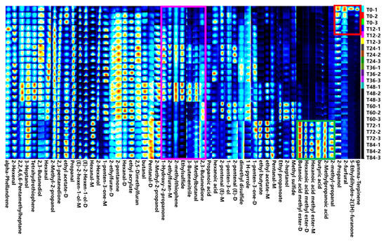 3.2. Identification of VOCs in Ready-to-Eat Kiwifruit Samples at Different Storage Periods