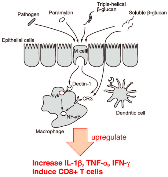 Immune regulation by paramylon. This is a diversion arrangement of Figure 3 from Nakajima et al. [97]. Reprinted with permission from Ref. [97]. 2023, Nakashima, A. et al.