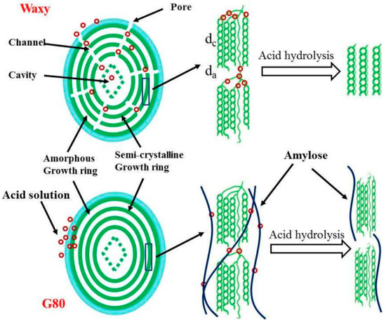 - Wang, S.; Copeland, L. Effect of acid hydrolysis on starch structure and functionality: A review. Crit. Rev. Food Sci. Nutr. 2015, 55, 1081–1097. [Google Scholar] [CrossRef] [PubMed]