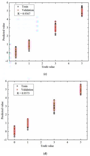 Figure 12 shows the recognition results of the BPNN model training and prediction under different numbers of principal component factors. It can be seen that, initially, with the increasing number of principal component factors, the recognition rates in the training and prediction sets generally exhibited an increasing trend, while after the number of principal component factors reached 7, the recognition rates of the models stabilized, and then even exhibited a moderately decreasing trend.