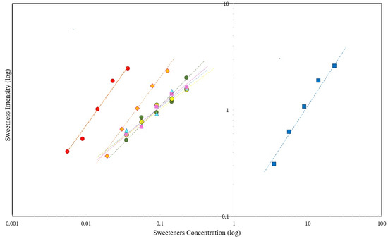 The Power Function was used to determine the equivalent sweetness, represented in Equation (5):