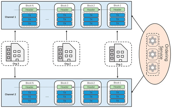 Channel can be regarded as a logical ledger. In the channel-level scheme, all stakeholders in the supply chain are abstracted as organizations connected to a channel-sharing ledger. Stakeholder organizations that need to conduct the private transaction are connected to another channel that excludes other organizations. Figure 4 shows the scenario where a channel-level scheme is adopted. All three organizations are connected to channel 1 and share the same ledger. Organization 1 and organization 3 are also connected to channel 2 and conduct the private transaction.