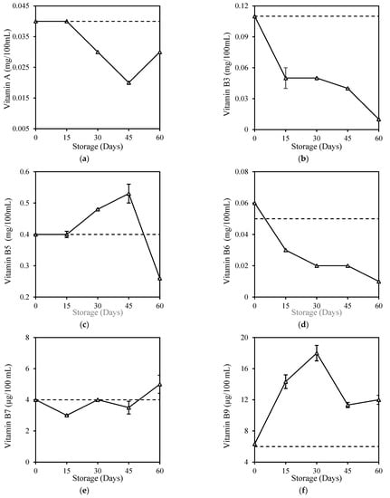 | Vitamin B7 (Biotin) | 1 µg/100 mL | 4.00 ± 0.00 a | 4.33 ± 0.58 a | 4.33 ± 0.58 a |