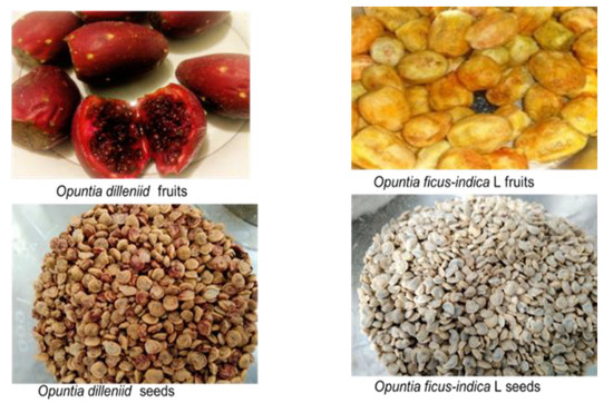 Appearance of Opuntia ficus-indica L. and Opuntia dillenii fruits and seeds.