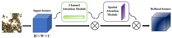 The output of the channel attention module is taken as an input into the spatial attention module, which is also subjected to maximum pooling and average pooling. Then the two are stacked through the Concat operation, which only compresses the channel dimension but not the spatial dimension to focus on the target’s location information. The mechanism is shown in Figure 6.
