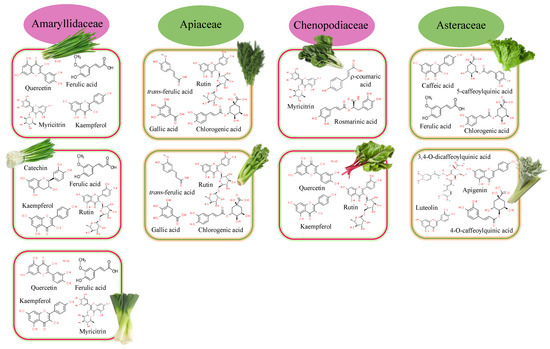 Major polyphenolic compounds found in the main families of leafy vegetables.