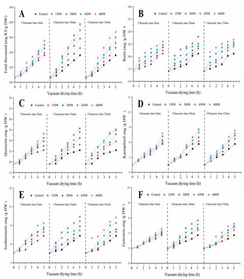 Gong, Y.; Li, J.; Li, J.; Fan, L.; Wang, L. Influence of Ultrasound-Assisted Vacuum Drying on Physicochemical Characteristics, Antioxidant Activity, and α-Glucosidase Inhibition Activity of Flos Sophorae Immaturus. Foods 2023, 12, 671. https://doi.org/10.3390/foods12030671