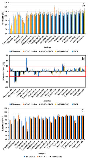 - Wang, S.; Li, M.; Li, X.; Li, X.; Li, X.; Li, S.; Zhang, Q.; Li, H. A functionalized carbon nanotube nanohybrids-based QuEChERS method for detection of pesticide residues in vegetables and fruits. J. Chromatogr. A 2020, 1631, 461526. [Google Scholar] [CrossRef]