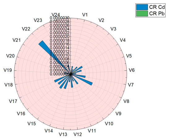 Graphical representation of the results obtained for carcinogenic risk (CR) in the case of Pb and Cd.