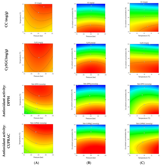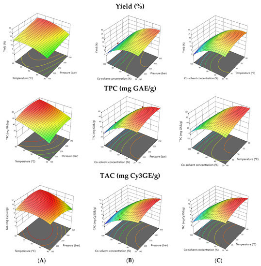 | Run | X1 (bar) | X2 (°C) | X3 (%) | Y | TPC | CC | TAC | Cy3GC | TAAD | TAAC |