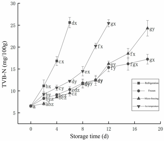 Changes in the TVB-N value of beef in different low-temperature storage methods during storage. d, day.