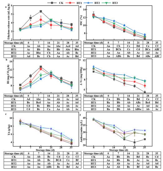 2.5. Effect of HT on Postharvest Quality of Blueberry