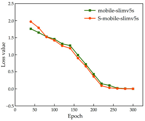 Comparison of loss value reduction of mobile-slimv5s with/without teacher network supervision.