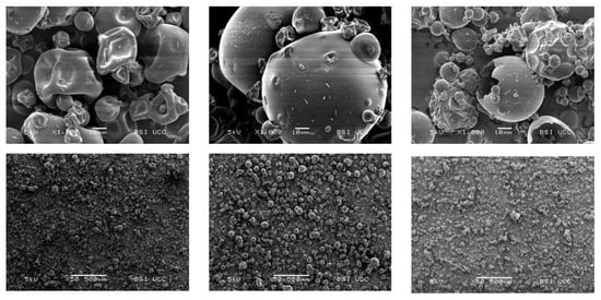 For PPI and SPI, the ultrastructure images reflect what has been described and seen previously in the literature for these isolates, namely a variety in particle size with a generally spherical particle with a dimpled surface [61,62,63]. Regarding EverPro, there is clear evidence of damaged particles, likely a result of the processing methods. The extreme variety in particle size may be due to the presence of both barley and rice proteins. However, there is little to no comparable data available in the literature.