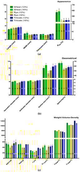 - Aprodu, I.; Banu, I. Milling, functional and thermo-mechanical properties of wheat, rye, triticale, barley and oat. J. Cereal Sci. 2017, 77, 42–48. [Google Scholar] [CrossRef]