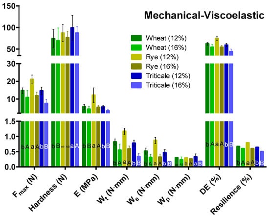 - Ponce-García, N.; Ramírez-Wong, B.; Torres-Chávez, P.I.; Figueroa-Cárdenas, J.D.D.; Serna-Saldívar, S.O.; Cortez-Rocha, M.O.; Escalante-Aburto, A. Evaluation of visco-elastic properties of conditioned wheat kernels and their doughs using a compression test under small strain. J. Sci. Food Agric. 2017, 97, 1235–1243. [Google Scholar] [CrossRef]