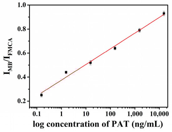Linear relationship between IMB/IFMCA and the logarithm of PAT concentration in real spiked matrix samples. The error bars were calculated on the basis of the standard deviation of three independent experiments.