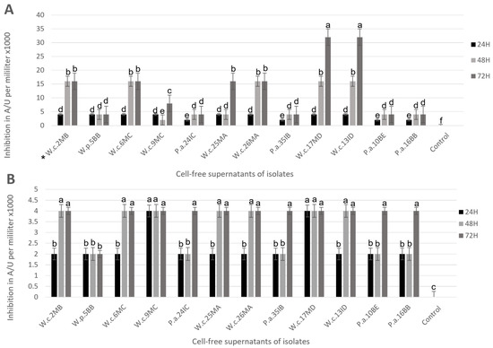 | Isolate | 24 h | 48 h | 72 h | 24 h | 48 h | 72 h |
