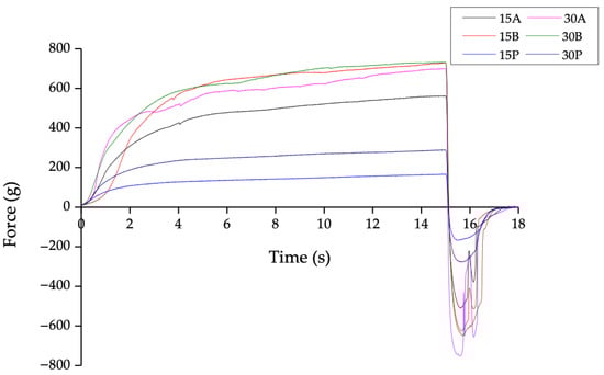| Cohesiveness (g) | 15A | 479 ± 25 cA | 460 ± 50 bA | 240 ± 21 aB |