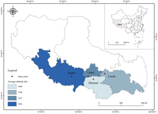All Tibetan chicken samples were collected from four different cities (Lhasa, Shannan, Linzhi, and Xigaze) in the Tibet Autonomous Region. Chicken samples were taken directly from local abattoirs within a period of month. The geographic location map of all the samples is shown in Figure 1. The details regarding the origin of 89 chicken samples are shown in Table 1. The chicken samples were packed in sealed polyethylene bags and stored at −20 °C.