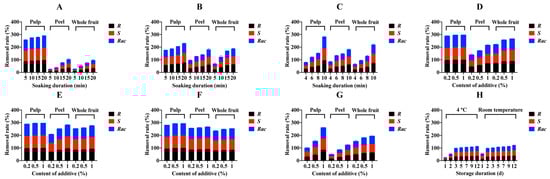 | Treatment | Duration (min) | Additive Content | PF (Average ± SD, n = 3) | |||||||||||