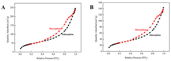 Nitrogen adsorption–desorption plots for MMIPs (A) and MNIPs (B).