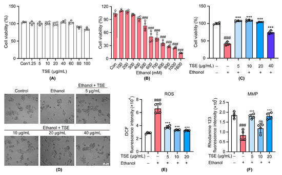 3.1. TSE Protected Ethanol-Induced Damage in HepG2 Cells