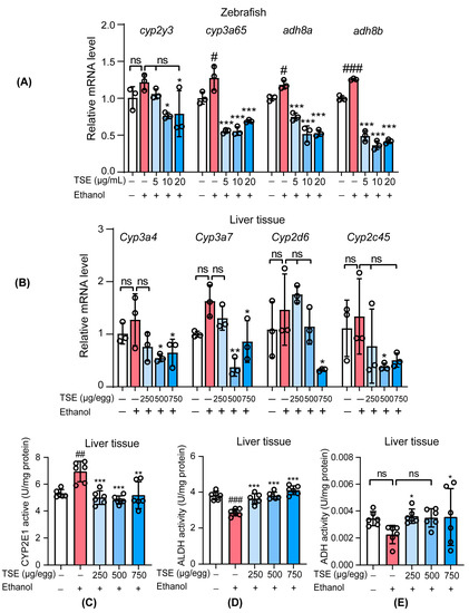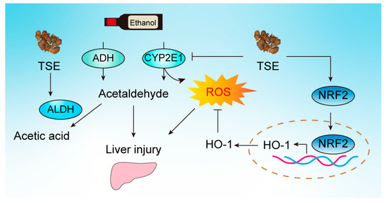 3.4. TSE Corrected the Disorder of Ethanol-Metabolic Enzymes In Vivo