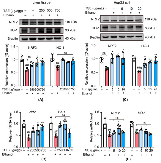 3.6. TSE Activated the Nuclear Factor Erythrocyte-2-Related Factor 2 (NRF2)-Mediated Antioxidant Response