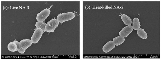 Micromorphology of live (a) and heat-killed (b) Loigolactobacillus coryniformis NA-3.