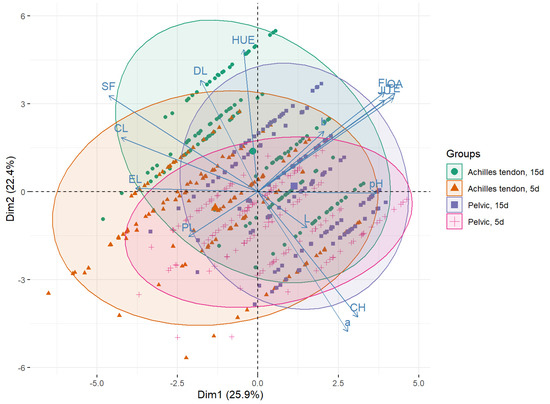 In addition, the data were evaluated by Pearson correlations. Subsequently, the data were evaluated by principal component analysis (PCA) using the R software (v. 4.1.2) to achieve an overview of their correlations and to visualize and determine the degree of the contribution of suspension method to the variation in quality traits in each biological type. The FactoMineR [25] and Factoextra [26] packages were used to generate the PCA plots and graphs, respectively.