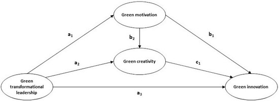 Green transformational leaders may serve as a positive role model for workers, enabling them to better internalize the ideals and objectives of environmentally sustainable development, strengthening their autonomous drive to engage in environmentally friendly behaviors [57,58]. As workers adopt and internalize the values communicated by their leaders, the significance of such environmental values in their creation of self-identity will increase, making environmental protection efforts more meaningful [59,60]. In this way, green motivation occurs when companies become environmentally conscious and encourage employees to generate ideas and plans for greening the company in order to maintain the surrounding natural ecosystem [17,61]. Green motivation has prompted companies to reconsider the goods they produce and the processes they use to manufacture them, therefore stimulating the creation of environmentally sustainable solutions [17].