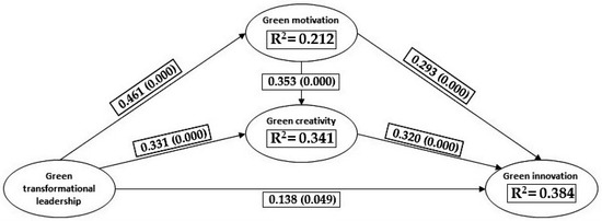 Green motivation exerts a mediating effect on the relationship between green transformational leadership and firms’ green innovation.