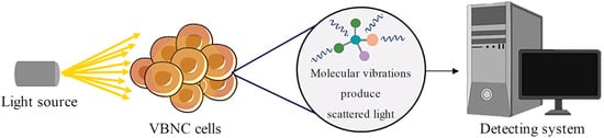 The beam generated by Raman spectroscopy produces scattered light when it irradiates the detectors. The system receiving the scattered signal provides a comprehensive intracellular molecular spectrum based on the vibrational frequencies of the characteristic chemical bonds. The spectral patterns produced by the detectors are analyzed and identification is based on spectral characteristics that include the number and length of the spectral lines [72,73]. The detection of bacteria by Raman spectroscopy is mainly based on the quantification of cellular metabolic activity, where water molecules (H2O) actively participate in cellular metabolic activities, including the synthesis of fatty acids, proteins, and nucleic acids. The heavy hydrogen isotope deuterium (D) can replace H) in water molecules during fatty acid and protein synthesis to form carbon–deuterium (C–D) bonds. The integrated spectral intensity of C–D and C–H segments is detected using spectroscopy analysis to quantify the degree of substitution of H by D, and thus evaluate the metabolic activity of bacteria (Figure 6) [74,75]. Guo et al. [74] used Raman spectroscopy to measure the metabolic activity of four strains of E. coli and S. aureus upon entry into the VBNC state under UV irradiation. Decreased metabolic activity was evident. However, even with extremely high UV intensity, some metabolic activity was retained, which included transcriptional, translational, and virulence factor expression pathways [74]. Other assays are more concerned with the average metabolic activity of the cell population. By contrast, Raman spectroscopy can provide a comprehensive description of the metabolic activity of a single cell. However, Raman spectroscopy is more expensive and requires operator expertise, which limits its large-scale application.
