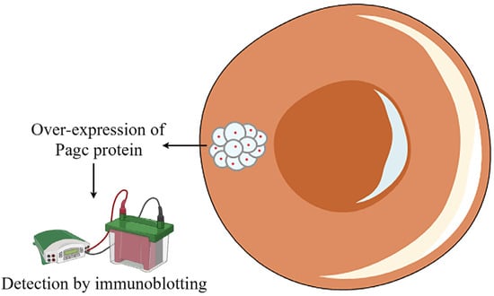 The physiological response of the bacteria when they enter the VBNC state is altered. This is reflected in the different products produced by VBNC bacteria compared to their culturable counterparts. This difference can be exploited to detect VBNC bacteria. Jun et al. [76] chemically induced the VBNC state in Salmonella. The bacteria retained their shape but released many membrane vesicles accompanied by transient overexpression of membrane vesicle protein PagC. This protein could be used as a biomarker to detect VBNC Salmonella cells by immunoblotting (Figure 7). The assessment of VBNC V. cholerae revealed different trends of the up- and downregulation of different proteins, which might permit the detection of VBNC V. cholerae [55]. The many biomarkers that have been identified include proteins, nucleic acids, polysaccharides, phospholipids, lipids, and others. In addition, some specific chemicals are present only in particular microorganisms. However, the use of biomarkers in the detection of VBNC bacteria is presently hampered by the physiology of different colonies.